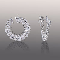 A grand tribute to classic hoops. These remarkable earrings feature a circular assembly of pear-cut diamonds. This pair symbolizes unity, and undoubtedly bestows luxury to your evening ensemble.