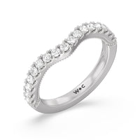This curved diamond set wedding band is perfectly contoured to complement our the liberty ring for a simple and sophisticated look.