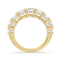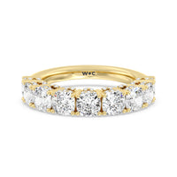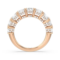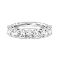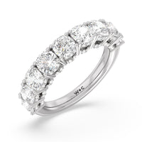 Shimmering pave diamonds cascade down this band to create a timeless beauty that will never go out of style. Designed to be paired with our majestic cushion cut side stones studded gallery engagement ring for a simple and sophisticated look.
