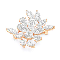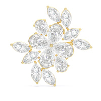A harmonious interplay of asymmetry, the opulent Mosaic Brooch showcases a mesmerizing cluster of pear and marquise-cut diamonds, artfully arranged to create a sense of movement and balance. The asymmetry adds depth and intrigue, ensuring that each facet catches the light from every angle creating a captivating, statement-making brooch that exudes luxury.