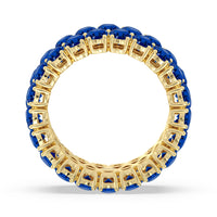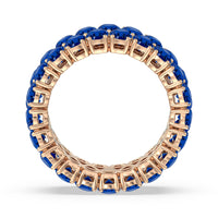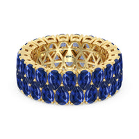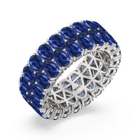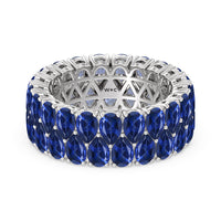 The head-turning brilliance of this ring is sure to steal your beloved's heart. This gorgeous eternity ring features a wide band decorated by two continuous lines of pear-shaped created sapphire in alternating north-south layout. The teardrop-shaped gems creatively mounted along the entire circumference of the band reflect, refract and disperse light oh-so-beautifully, creating an incomparable radiance.