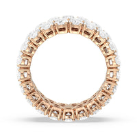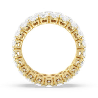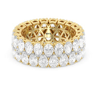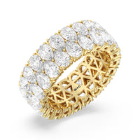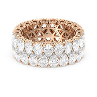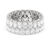 The head-turning brilliance of this ring is sure to steal your beloved's heart. This gorgeous eternity ring features a wide band decorated by two continuous lines of pear-shaped diamonds in alternating north-south layout. The teardrop-shaped gems creatively mounted along the entire circumference of the band reflect, refract and disperse light oh-so-beautifully, creating an incomparable radiance.