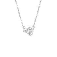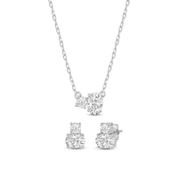 A brilliant symbol of enduring connection, this Toi et Moi or You-and-Me jewelry set celebrates a love that builds and sustains. The set includes a pair of earrings and a necklace, each detailed with a duo of diamonds. A petite round diamond is set alongside an oval diamond, infused together in perfect harmony.