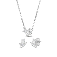 The Pear Toi et Moi set is the epitome of modern elegance, making it a must-have on everyone's wishlist. The set includes a pair of diamond earrings and a diamond necklace, each adorned with a captivating pair of diamonds. A round diamond is positioned next to a pear-cut diamond, effortlessly complementing one another.