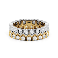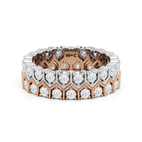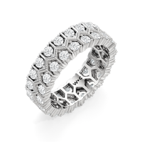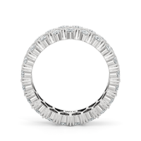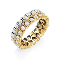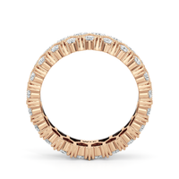 This eternity ring features an unbroken sequence of chevron motifs, each peak and valley capturing the dynamic essence of the Art Deco movement. The geometric pattern, an important element of Art Deco design, is enhanced by the brilliance of carefully set diamonds, showcasing symmetry and rhythm in perfect harmony. The ring's radiance unfolds like the reflections on the waters of the famed Piscine Molitor. Light interacts with the ring's surface, gleaming and changing with every graceful move, evoking elegance in motion.