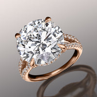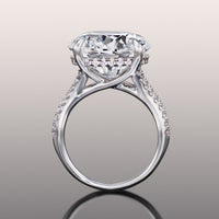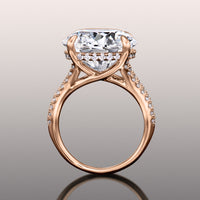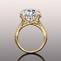 Discover an elegant twist on timeless design. The alluring center stone sits high on a cathedral shank with arching split shoulders encrusted in petite round diamonds, creating a romantically sleek look. A hidden halo encircles the central gem, making it appear more brilliant for a captivating finish.