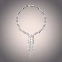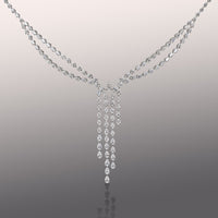 Those wanting to veer off well-beaten paths will instantly be drawn to the unconventional charm of this diamond chandelier necklace. This incredible piece features two strands of pear-cut diamonds that culminate in a chandelier-like pendant. Four more strands, varying in lengths, of pear diamonds cascade from the center of the necklace and down the décolletage. Anything but ordinary, this necklace makes a statement with its perfect blend of brilliance and peculiarity.
