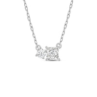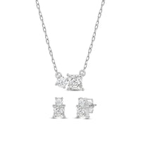 The Princess Toi et Moi Set makes a stunning representation of harmony in love. This studs and necklace set features two diamonds infused together. The princess-cut diamond pairing offers an exceptional play of light that's sure to leave an impression.