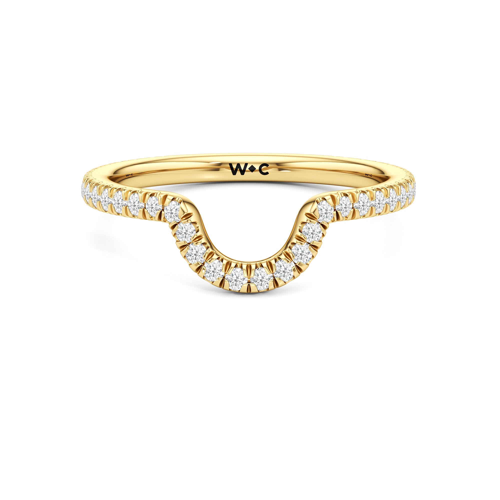 This curved diamond set wedding band is perfectly contoured to complement our the regency ring for a simple and sophisticated look.