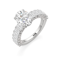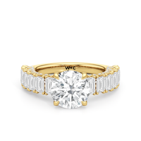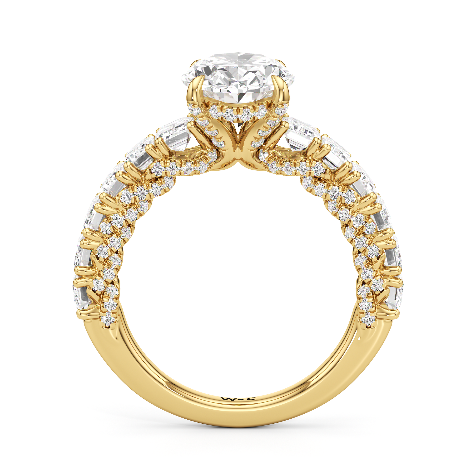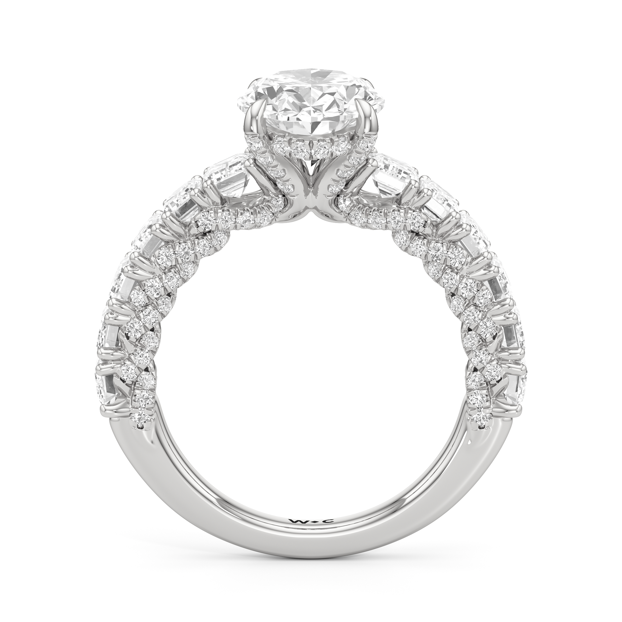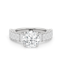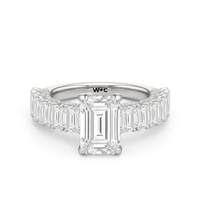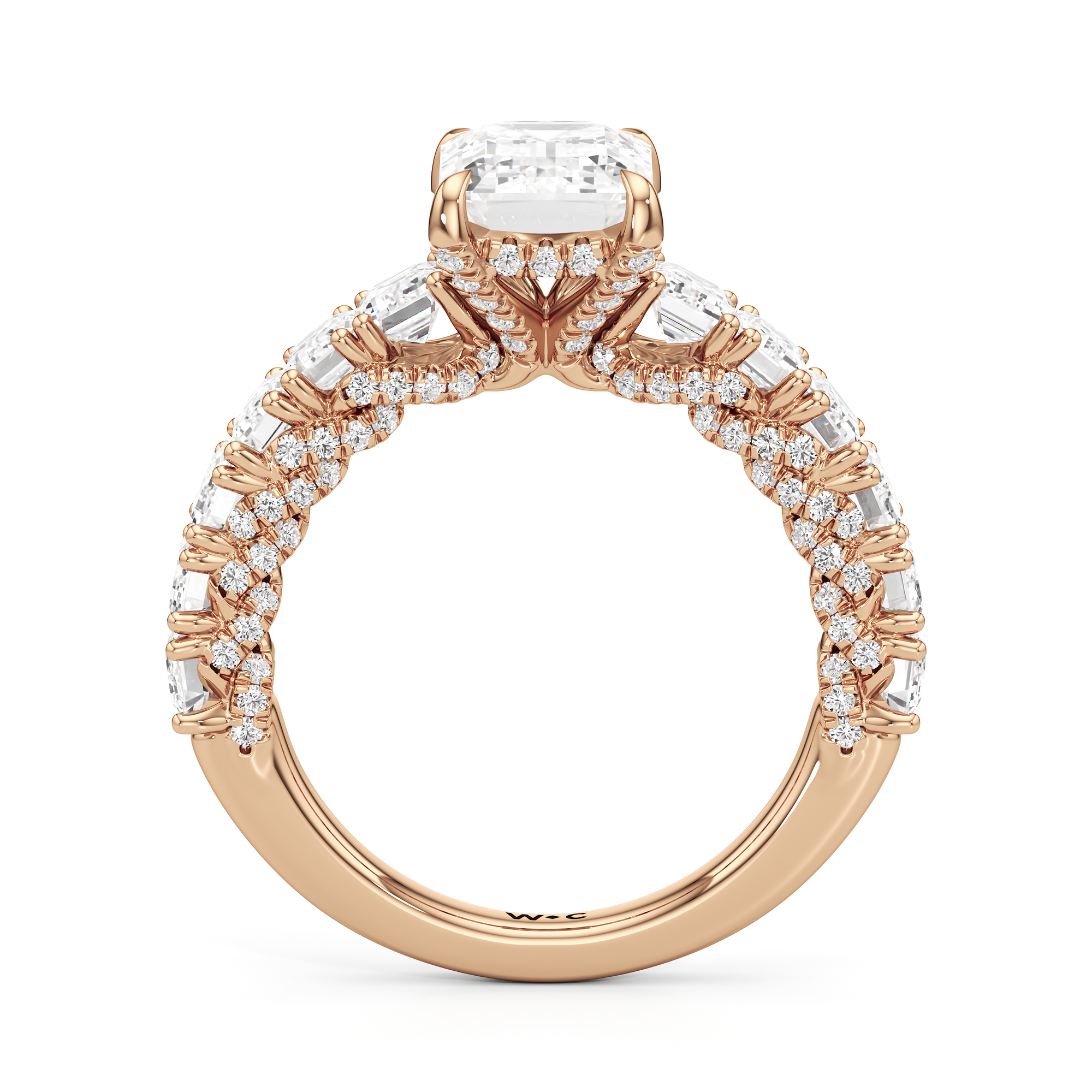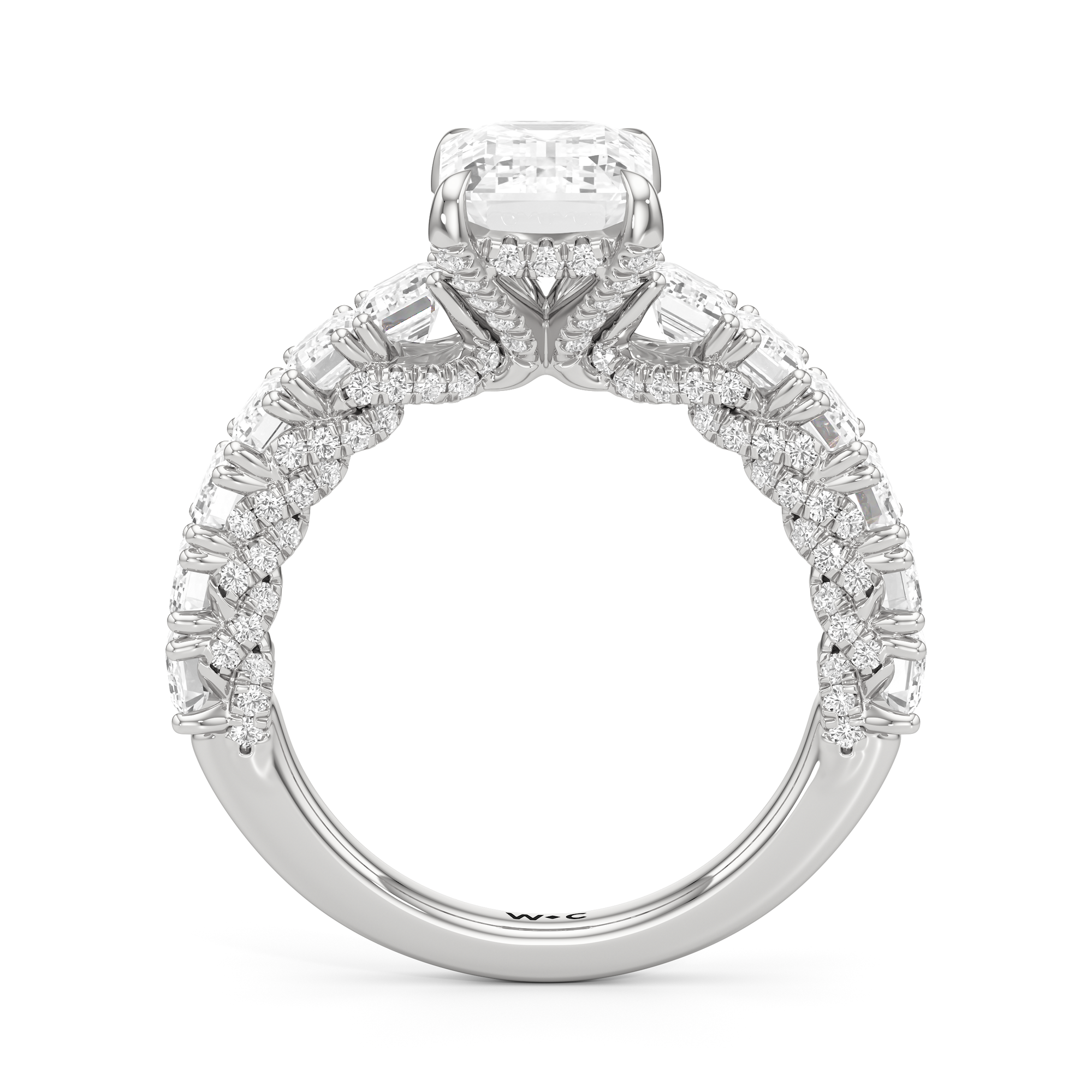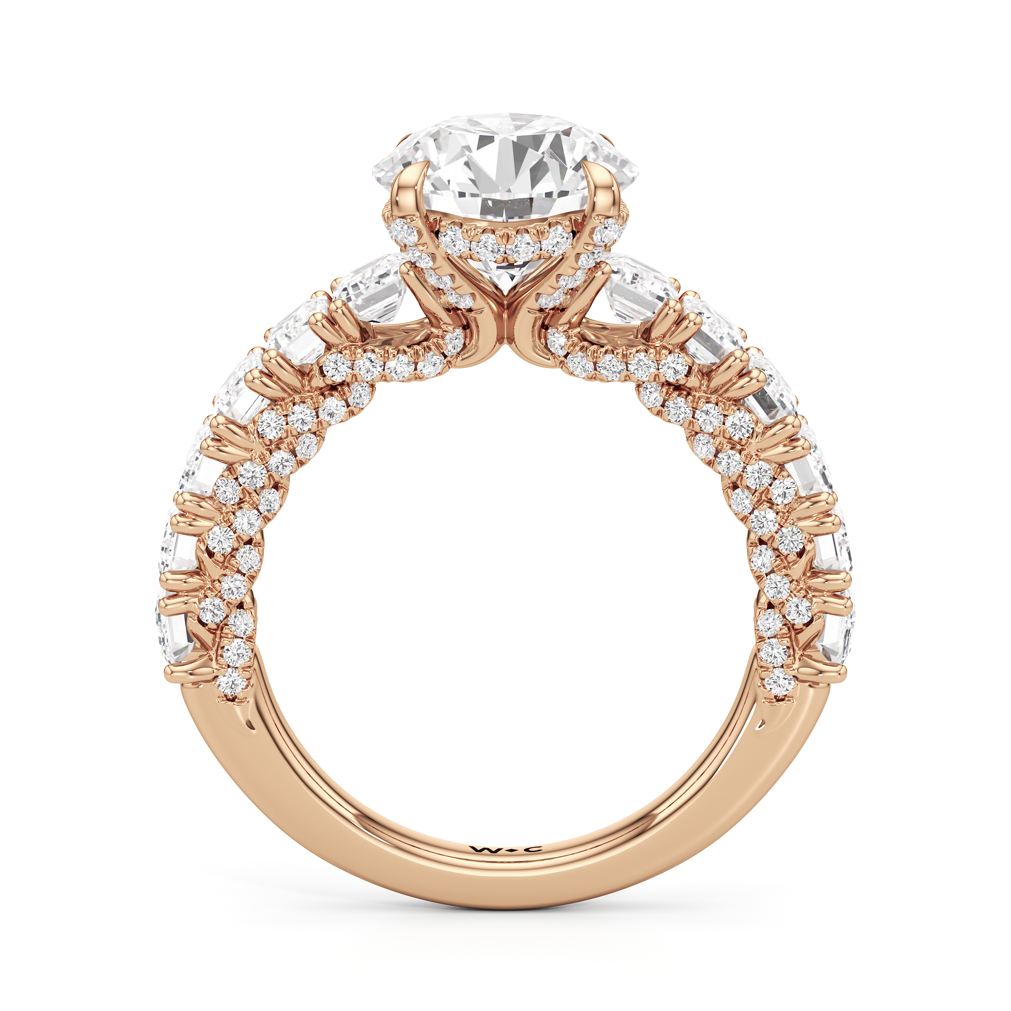 The classic Roosevelt design, now featuring emerald-cut side stones that line the band. The sleek geometry and step-cut sparkle give the ring a refined, elongated look while maintaining Roosevelt’s signature balanced proportions.