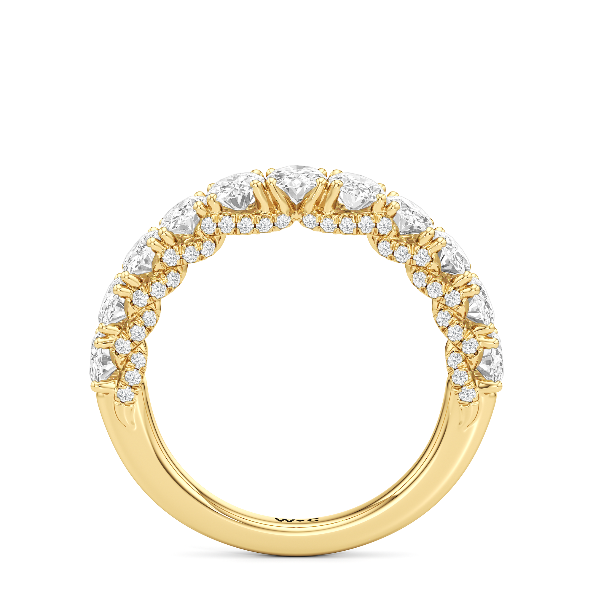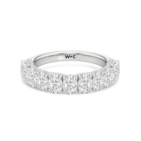 Shimmering pave diamonds cascade down this band to create a timeless beauty that will never go out of style. Designed to be paired with our ‘the roosevelt three stone ring’ for a simple and sophisticated look.