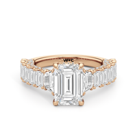 The Roosevelt Three Stone Trapezoid Ring with Emerald Cut Diamond in 14KT Rose Gold view 3