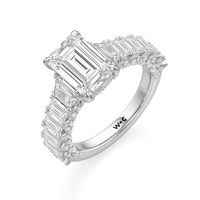The Roosevelt Three Stone Trapezoid Ring with Emerald Cut Diamond in 14KT Platinum view 4