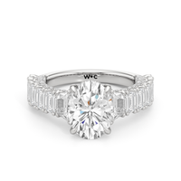 The Roosevelt Three Stone Trapezoid Ring with Oval Cut Diamond in 14KT Platinum view 3