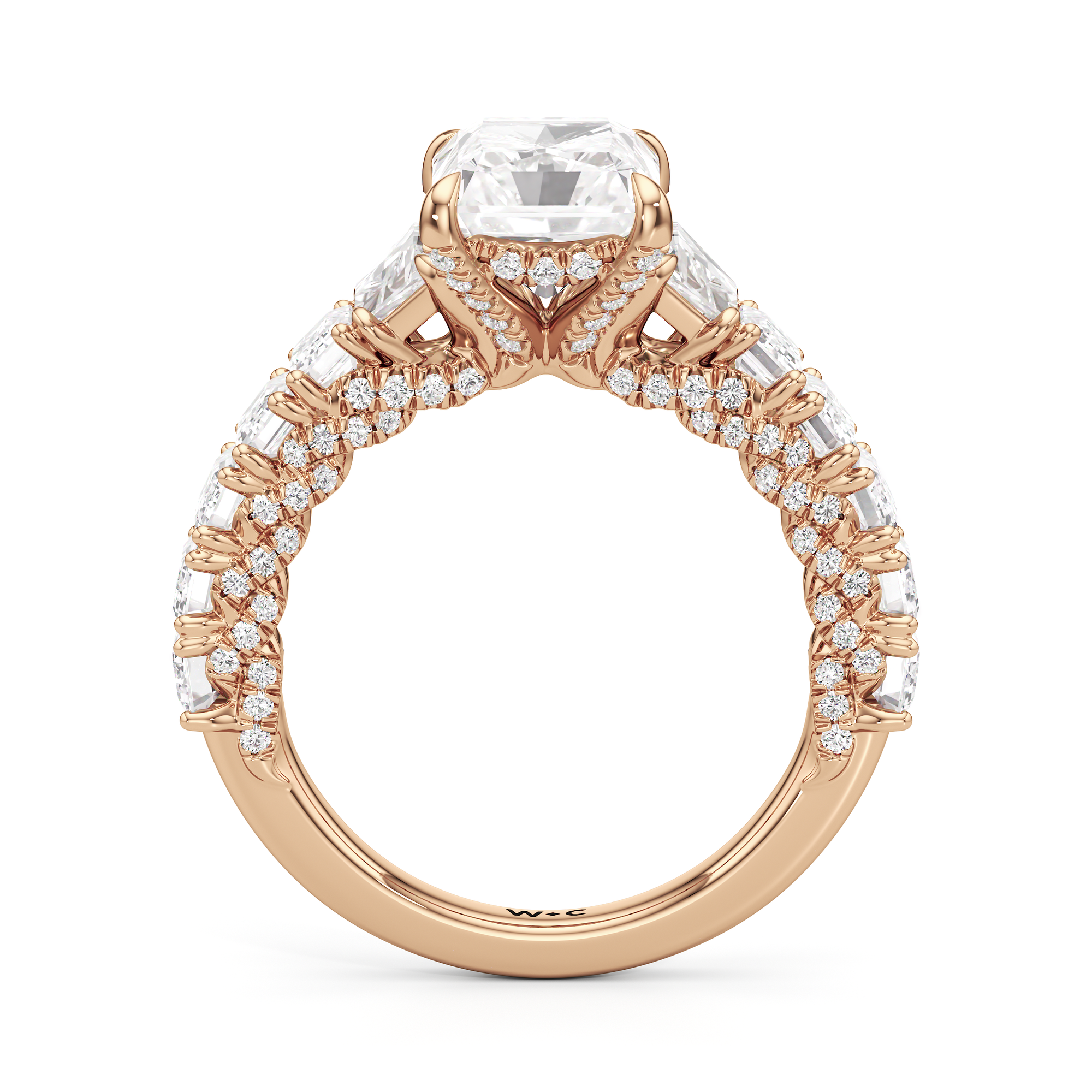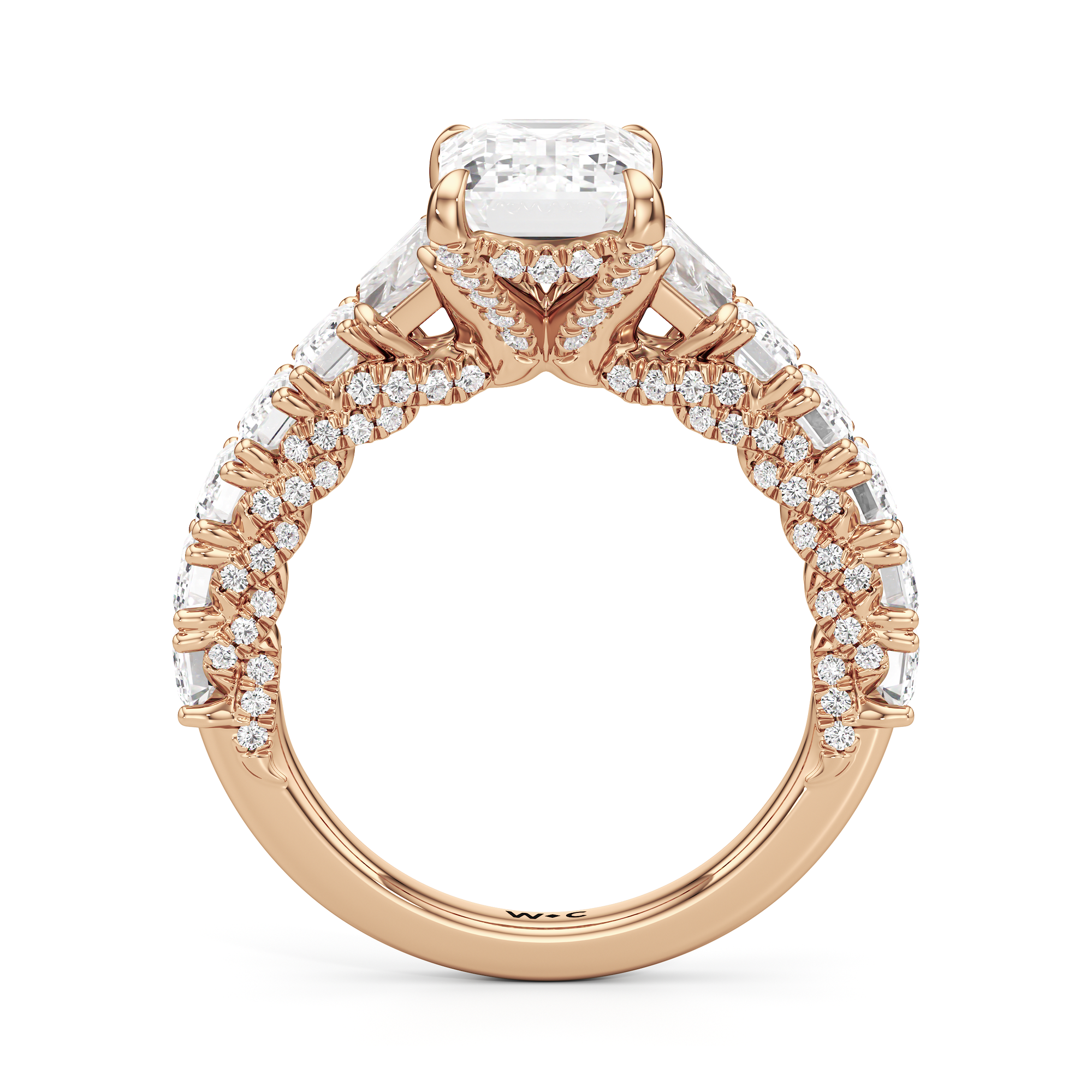 The Roosevelt Three Stone Trapezoid Ring with Emerald Cut Diamond in 14KT Rose Gold view 4