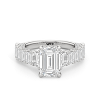 The Roosevelt Three Stone Trapezoid Ring with Emerald Cut Diamond in 14KT Platinum view 3