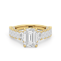 The Roosevelt Three Stone Trapezoid Ring with Emerald Cut Diamond in 14KT Yellow Gold view 3