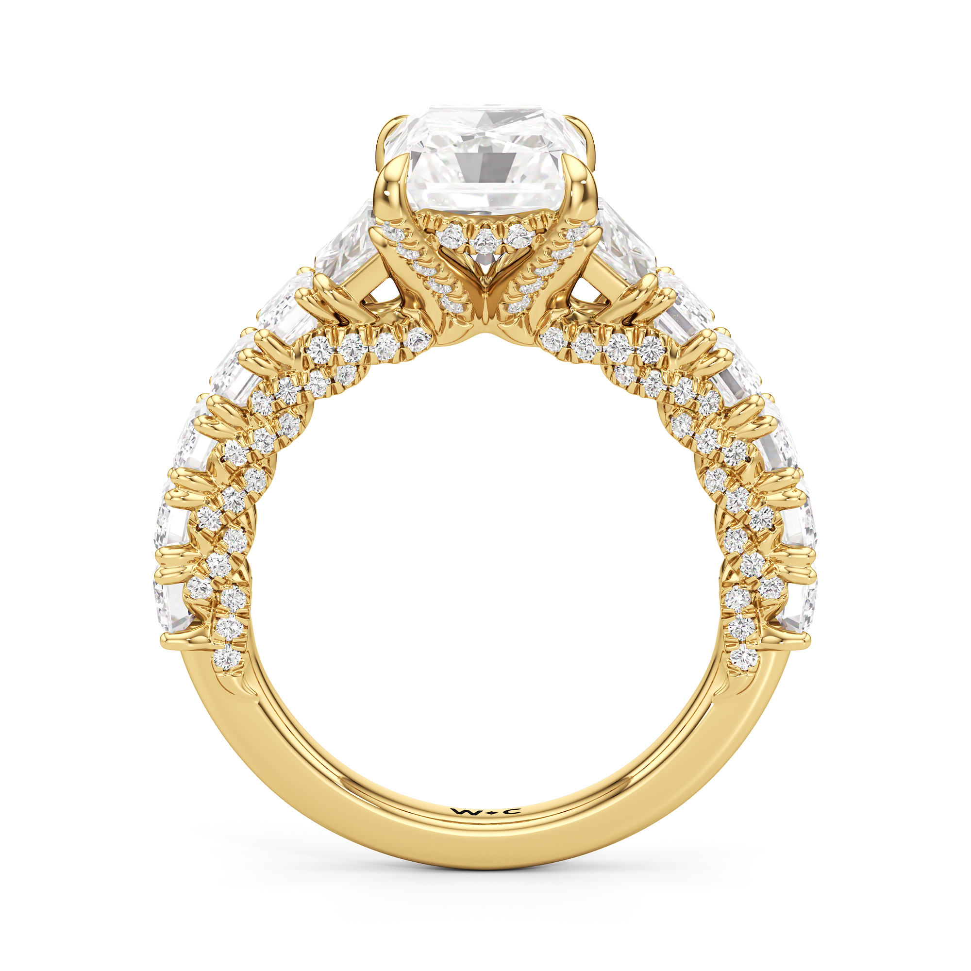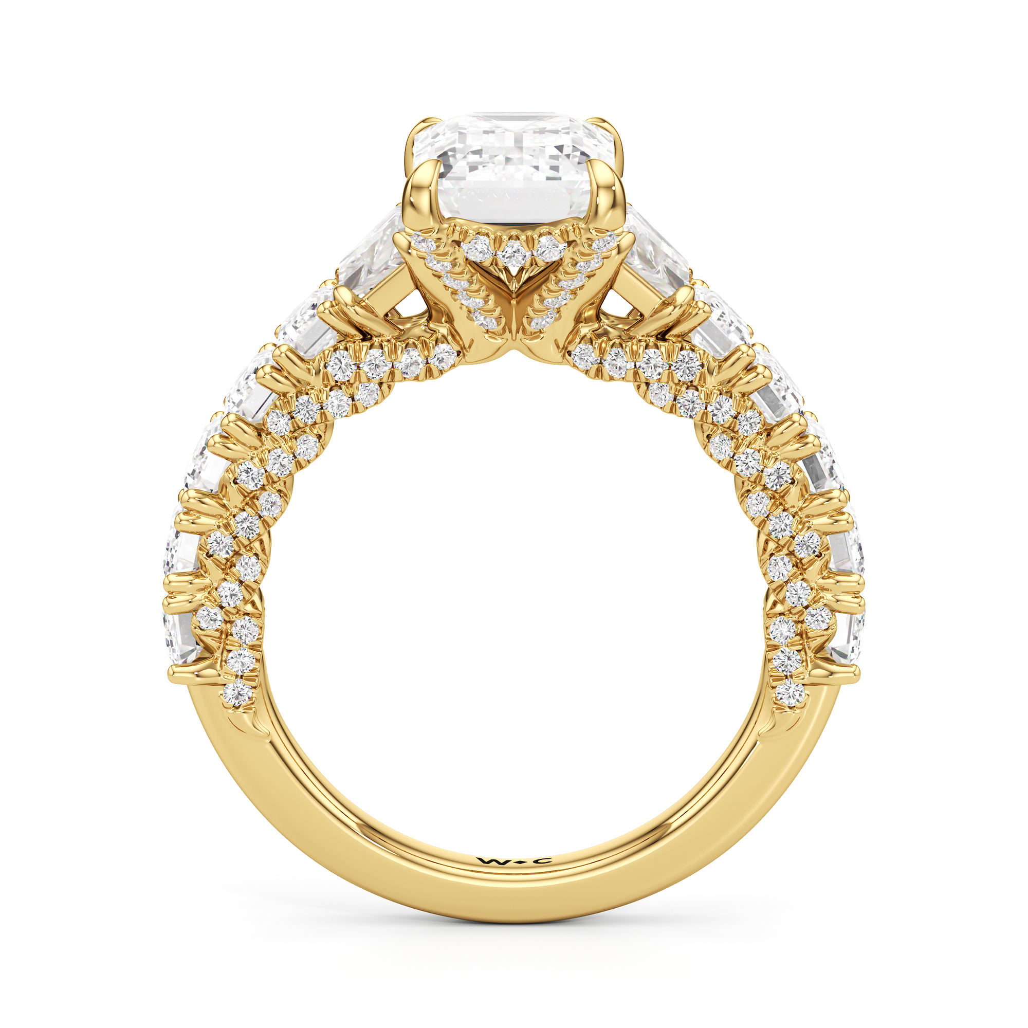 The Roosevelt Three Stone Trapezoid Ring with Emerald Cut Diamond in 14KT Yellow Gold view 4