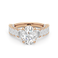The Roosevelt Three Stone Trapezoid Ring with Oval Cut Diamond in 14KT Rose Gold view 3
