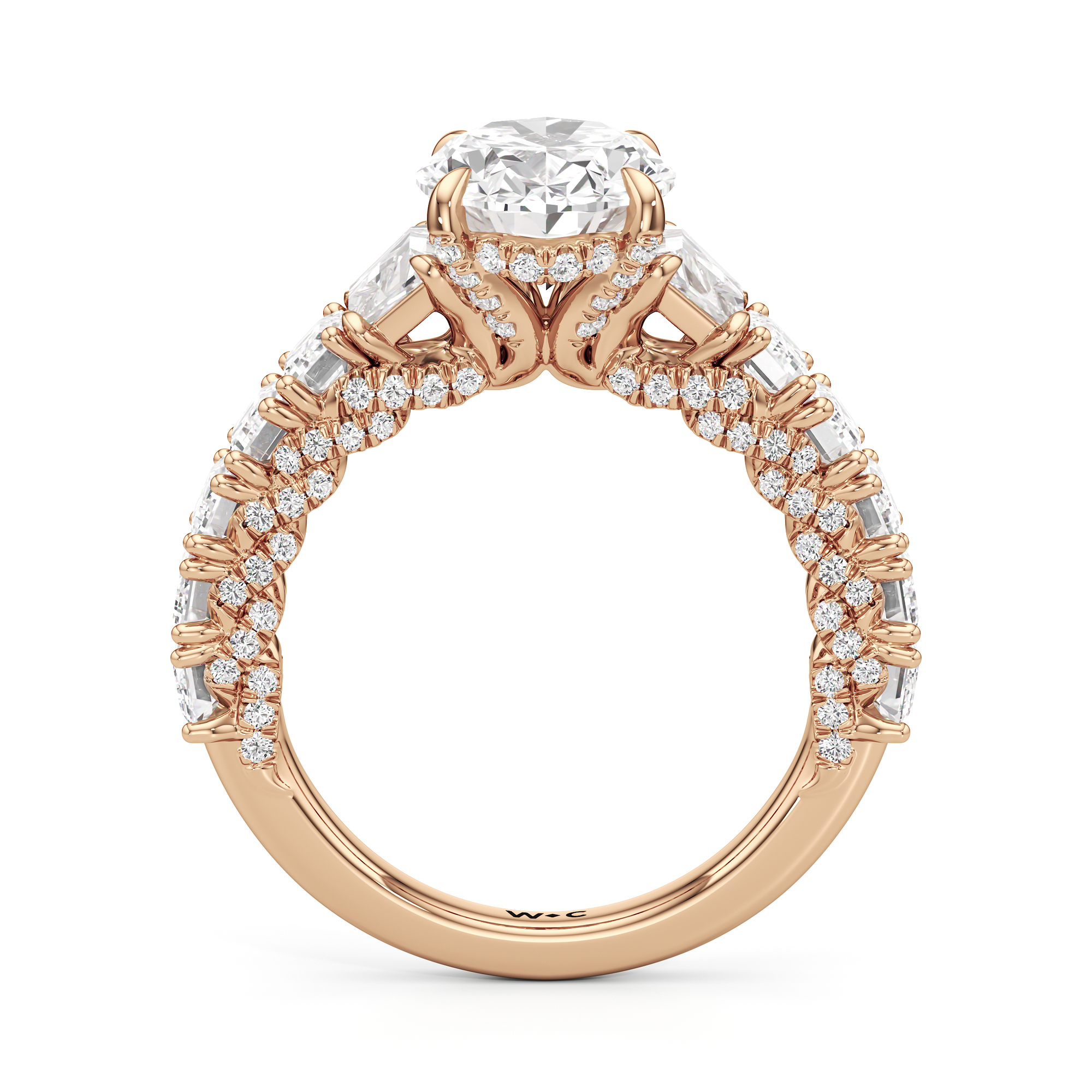 The Roosevelt Three Stone Trapezoid Ring with Oval Cut Diamond in 14KT Rose Gold view 4