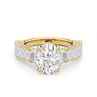 The Roosevelt Three Stone Trapezoid Ring with Oval Cut Diamond in 14KT Yellow Gold view 3