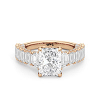 The Roosevelt Three Stone Trapezoid Ring with Radiant Cut Diamond in 14KT Rose Gold view 4