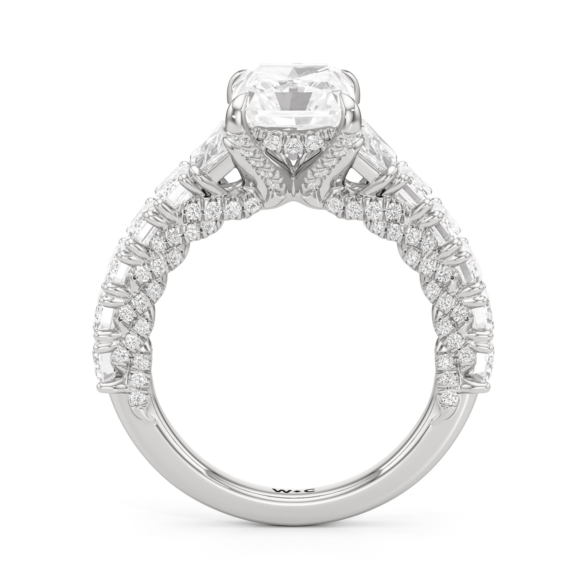 The classic Roosevelt design, now featuring emerald-cut side stones that line the band. The sleek geometry and step-cut sparkle give the ring a refined, elongated look while maintaining Roosevelt’s signature balanced proportions.