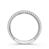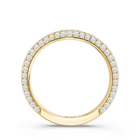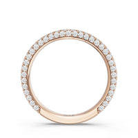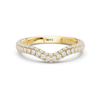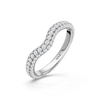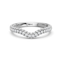 This curved diamond set wedding band is perfectly contoured to complement our the rouge ring for a simple and sophisticated look.