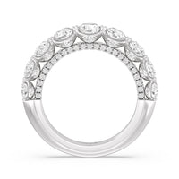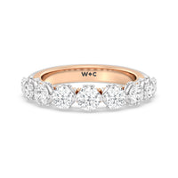 A diamond ring of enchanting refinement. This two-toned anniversary ring features an outer shank with half a circle of round diamonds on diamond-punctuated baskets. The inner shank features an arch of petite round diamonds on micro prongs. Together, the shanks meld into one beautiful ring that delivers tons of sparkle.