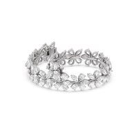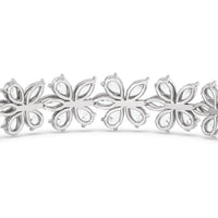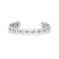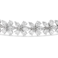 Another masterpiece inspired by nature's flora, the Plumeria Bracelet is a tribute to the large and aromatic five-petaled plumeria, which symbolizes resilience and renewal. It features a continuous line of plumeria blooms, each lavishly set with pear and marquise diamond petals. The bracelet's style is both delicate and alluring, made to be as decadently sweet as a plumeria's fragrance.