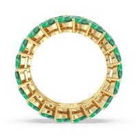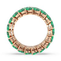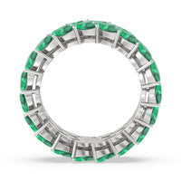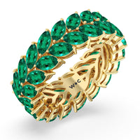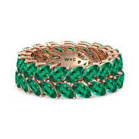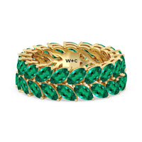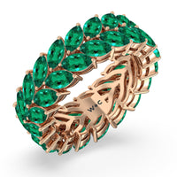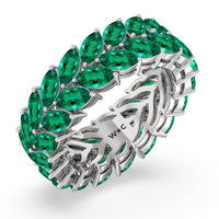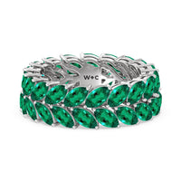 Celebrate a love that continuously grows with this remarkable ring. The band is fully covered with two rows of marquise-cut created Emerald, set on prongs. The Marquise Stones are laid out in a style that suggests movement. Like the flow of your love, this ring's brilliance never dulls and never stops.