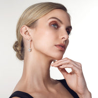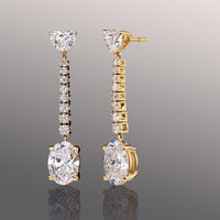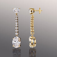 Unveil preciously delicate details that capture the epitome of fine craftsmanship. The effortless look of these earrings features a heart-shaped diamond post with a linear drop of tapering round diamonds. Each vertical row of sparkle concludes with a remarkable oval diamond secured by claw prongs.