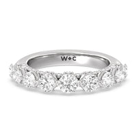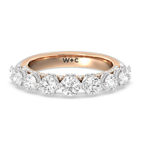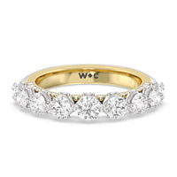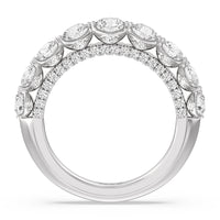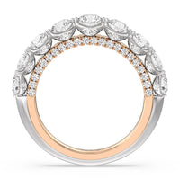 Shimmering pave diamonds cascade down this band to create a timeless beauty that will never go out of style. Designed to be paired with our majestic two-tone gallery with marquise and round stone side stone engagement ring for a simple and sophisticated look.