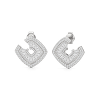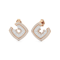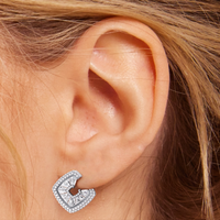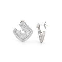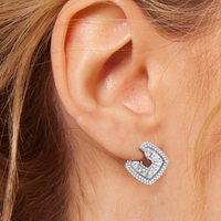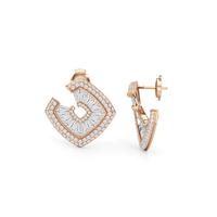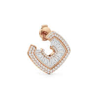 Inspired by the spirals and rounded curves that defined the Late Deco Movement of the 1930s, these stud earrings showcase a captivating orange-peel-style silhouette. Their gently undulating form evokes a sense of ageless elegance and organic movement. Special-cut baguette diamonds are expertly embedded within a channel, tracing the graceful curves of the earrings to create a graceful, continuous flow. The delicate border of baby pavé-set round diamonds adds dimension and boosts brilliance, refining the earrings' sculptural form while emphasizing the impression of fluid motion.