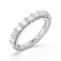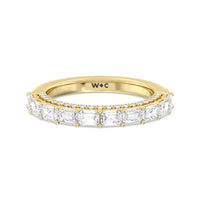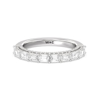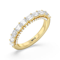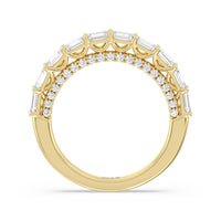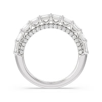 Shimmering pave diamonds cascade down this band to create a timeless beauty that will never go out of style. Designed to be paired with our illuminate rounds and emeralds cross mirror image band engagement ring for a simple and sophisticated look.