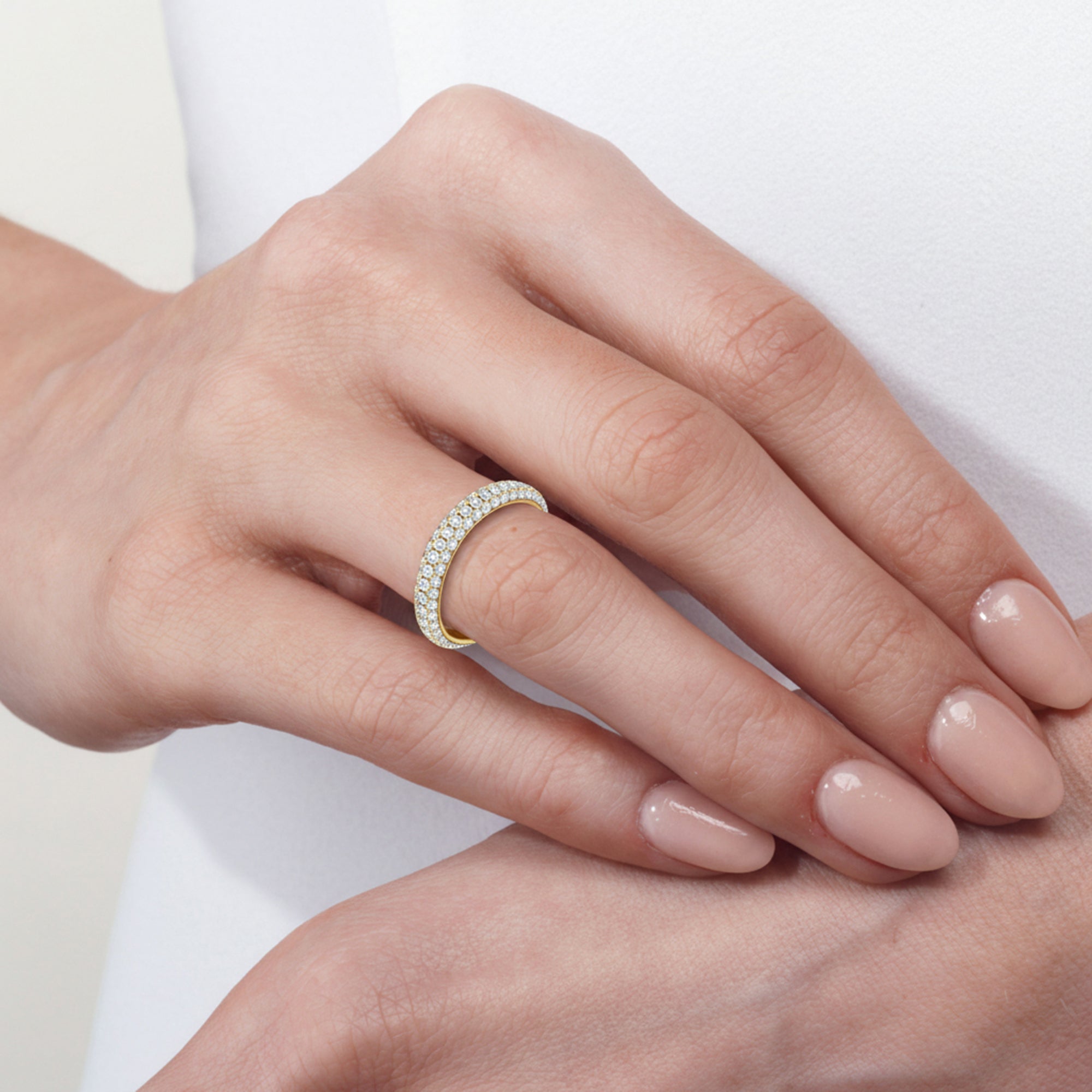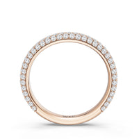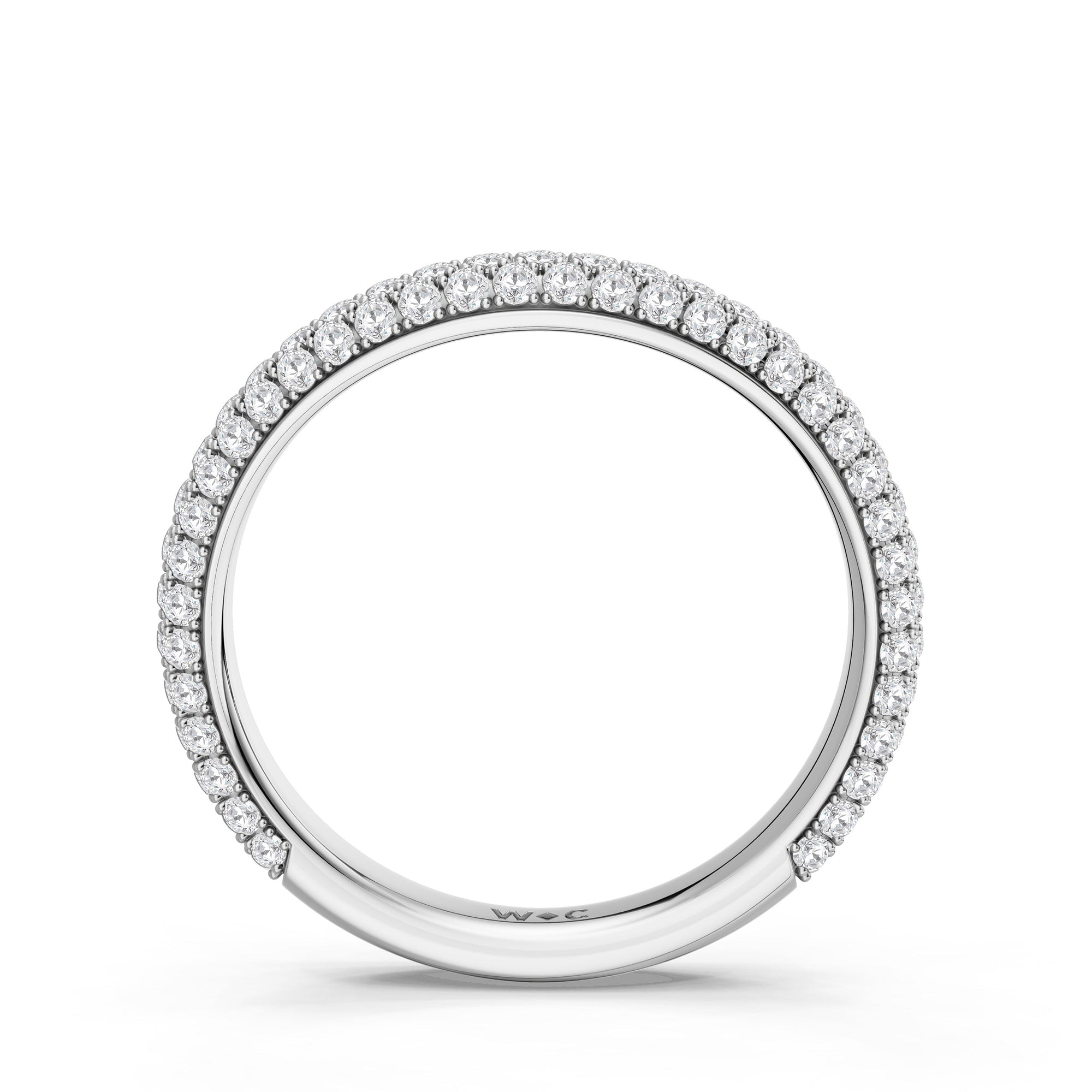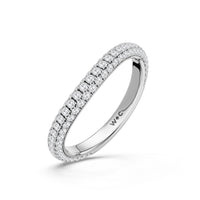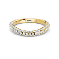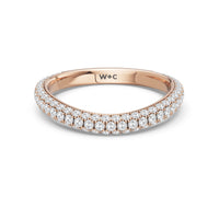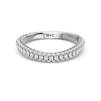 This curved diamond set wedding band is perfectly contoured to complement our ‘the viridalis ring’ for a simple and sophisticated look.