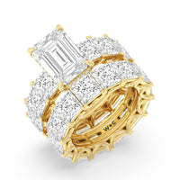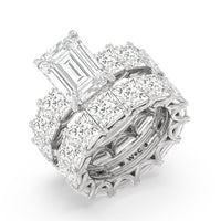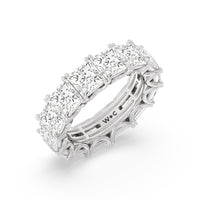 A ring of everlasting shine for love that is never-ending. This classic diamond eternity ring offers full-coverage sparkle as the band is entirely covered with princess-cut diamonds on u-shaped claw prongs, bringing a dazzling shimmer to this ring.