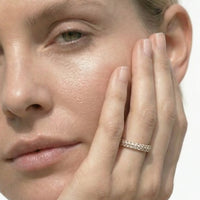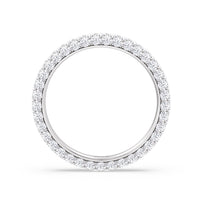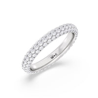 A powerfully elegant diamond eternity ring to gift to your special someone, or to yourself. The band has its entire circumference meticulously adorned with three rows of round diamonds in a pavé setting. It's the perfect ring to seal off any look, or to seal your love story.