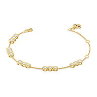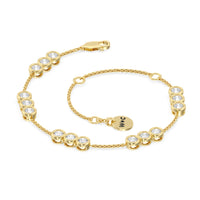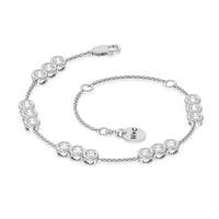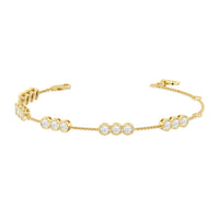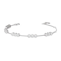 Round out your everyday style with the sparkle of this diamond bracelet. You can wear it on its own or stack it with a timepiece or a couple of bangles. This bracelet is designed to withstand frequent use. It features a series of diamond trios set securely on bezels. The bezel setting ensures the diamond stays firmly in place and its sides are protected from impact.