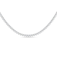 A sophisticated diamond sparkler stylish enough to wear year-round. This piece features a continuous strand of brilliant-cut diamonds, each delicately laid on a three-prong setting. Such a setting not only gives a unique look to the necklace but also offers a better view of the stone's circumference creating the illusion of a larger diamond.