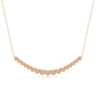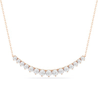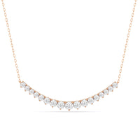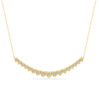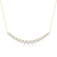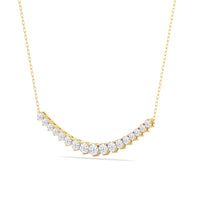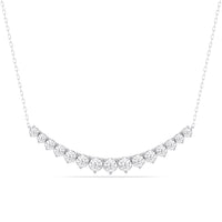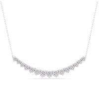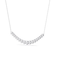 For a fresh take on the classic tennis necklace, consider this sparkling strand with diamonds on three prongs. This piece features a stylish chain link necklace adorned at the center with a gorgeous ribbon of round diamonds, each set on a three-prong basket. The triple prongs give each stone a triangular silhouette that delivers an edgy-elegant vibe.