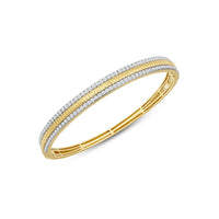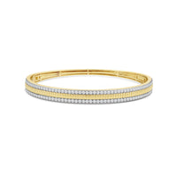 Expect this diamond-lined bangle to add an extra element of sophistication to your looks. It features two rows of diamonds lining the edges of the hinged bracelet's top half. Sandwiched in between the sparkling rows is a ridged metal accent for that hint of elegant texture.