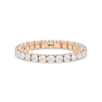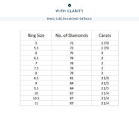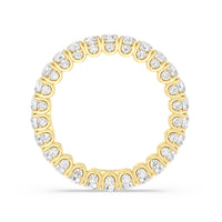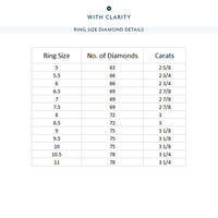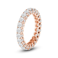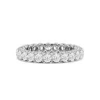 Get ready to be stunned by this ring's unhindered play of light. You will get an unbroken sparkle from the row of round diamonds on the band's entire circumference. The ring's sides are also traced with more round diamonds for a truly constant and ceaseless shimmer.