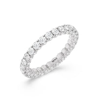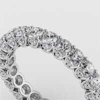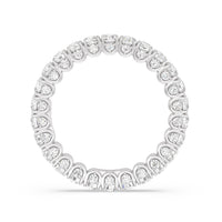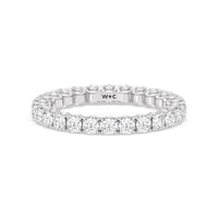 Get ready to be stunned by this ring's unhindered play of light. You will get an unbroken sparkle from the row of round diamonds on the band's entire circumference. The ring's sides are also traced with more round diamonds for a truly constant and ceaseless shimmer.