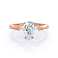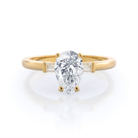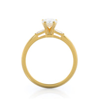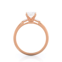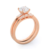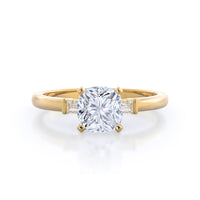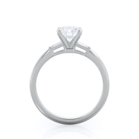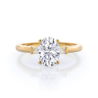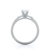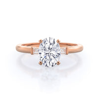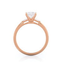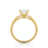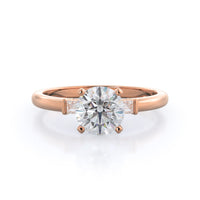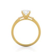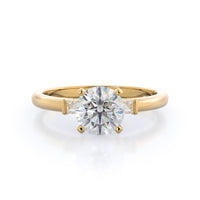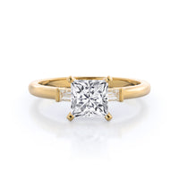 Classic three stone diamond setting with accenting baguette side stones
