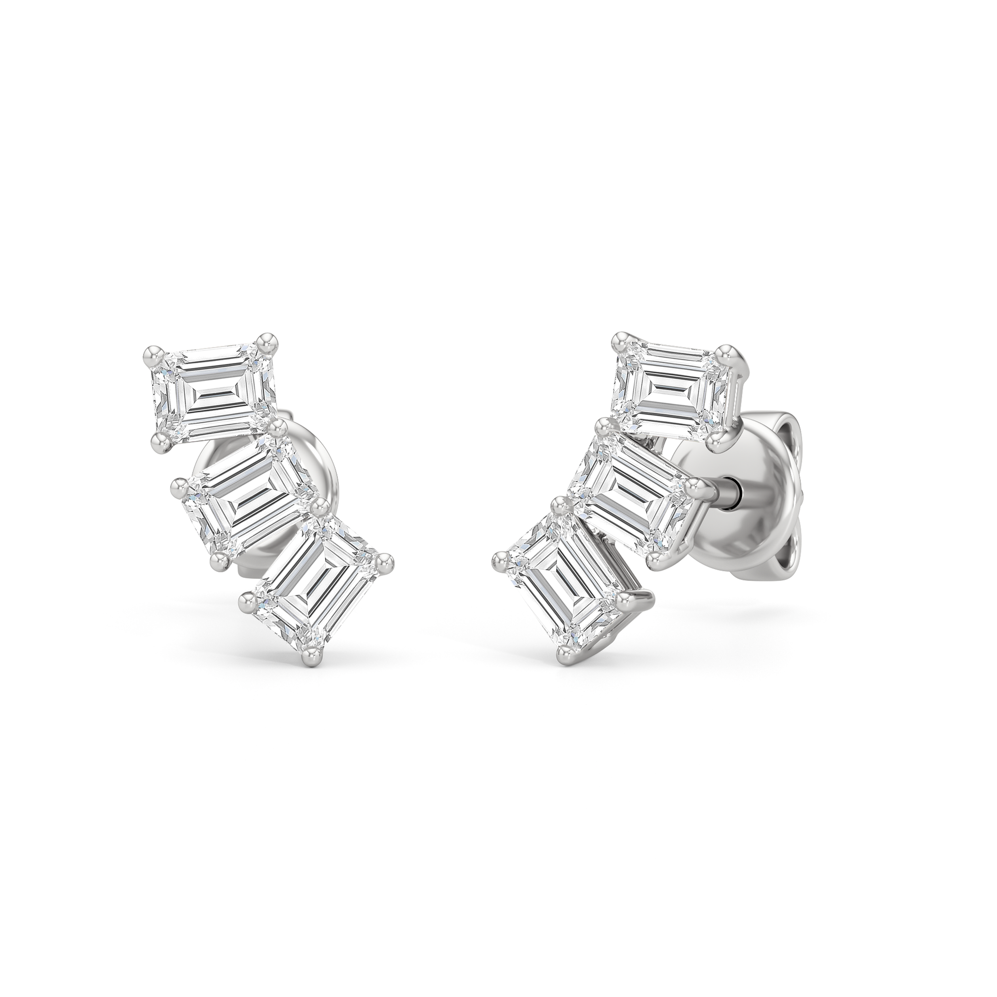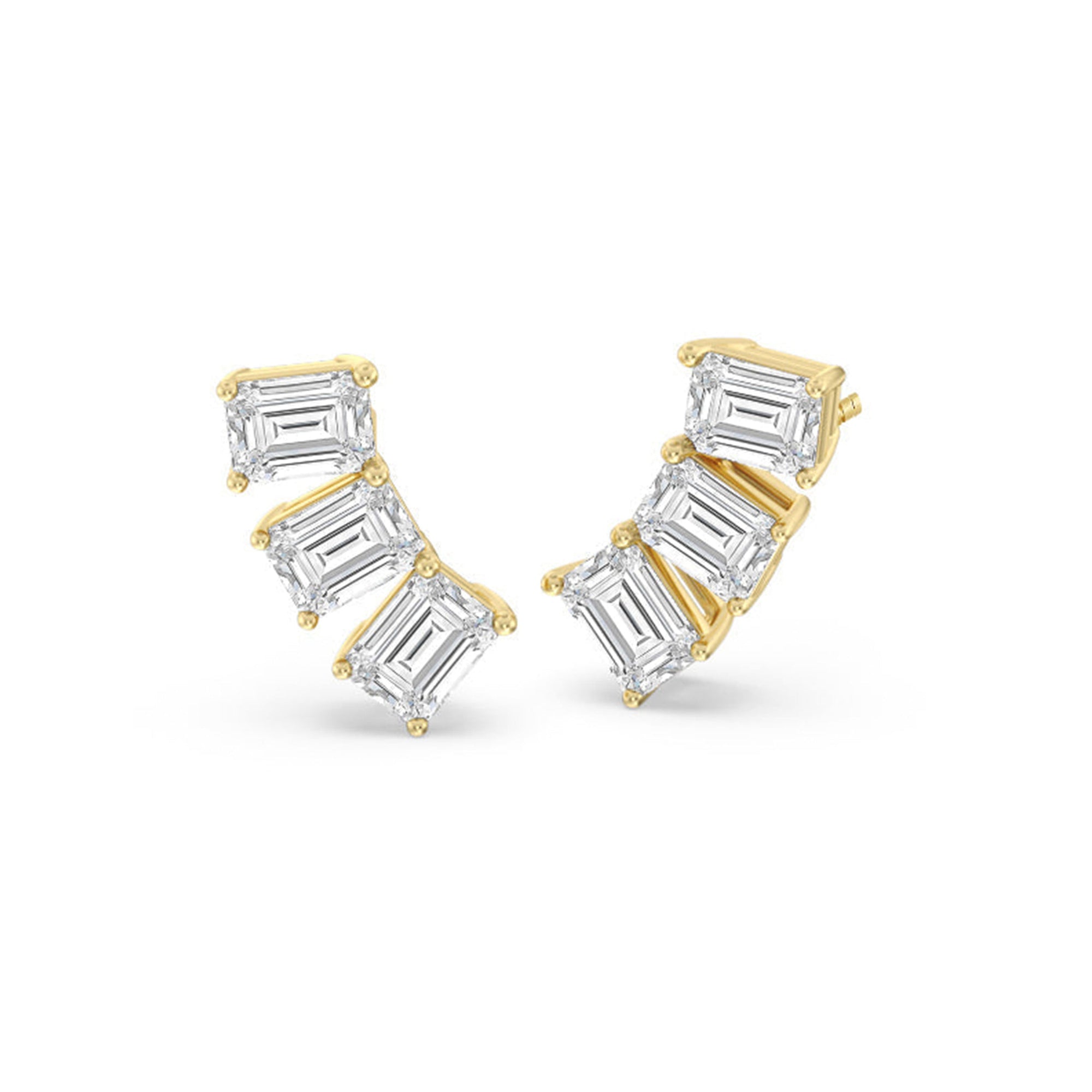 You need not get your ears pierced multiple times to get that stacked look. All you need is this pair of ear climbers to let your personality and style shine. Each earring features a curved line of three emerald-cut diamonds. The "climbing" layout of the gems gives the illusion of multiple piercings. Wear this pair to add a touch of edginess to any ensemble instantly.