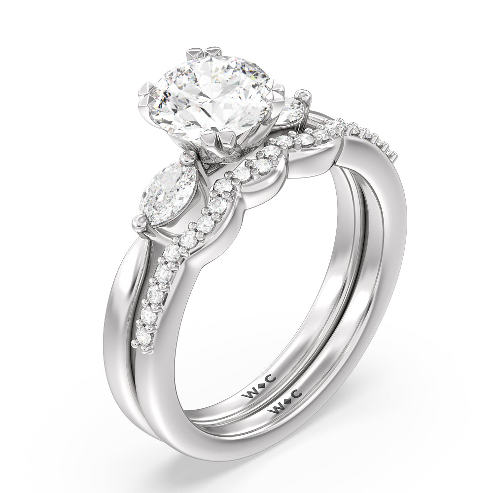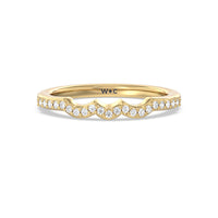 This curved fine line diamond set wedding band is perfectly designed to complement our three stone marquis fine line engagement ring style for a modern and sophisticated look.