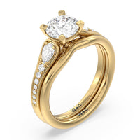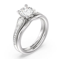 This curved band is perfectly contoured to complement our three-stone pave engagement ring for a simple and sophisticated look