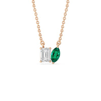 Adding this to any ensemble makes a subtle yet tasteful difference to your looks. This two-stone pendant features an emerald-cut diamond and Created Emerald marquise , on separate pronged bezels, sitting side by side to provide an eye-catching shine. Its edgy yet discreet design will complement everything, from casual jeans-and-a-tee to your elegant LBD.