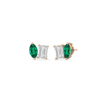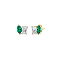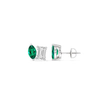 A pair you'll love now and forever. These dazzling diamond ear sparklers showcase both a modern and timeless aesthetic. Each stud features two prong-set - one created Emerald marquise and one emerald-cut diamond, on a single screw-back post. The minimalist style and geometric flair of these earrings can adapt to trends with no effort while retaining its understated charm.